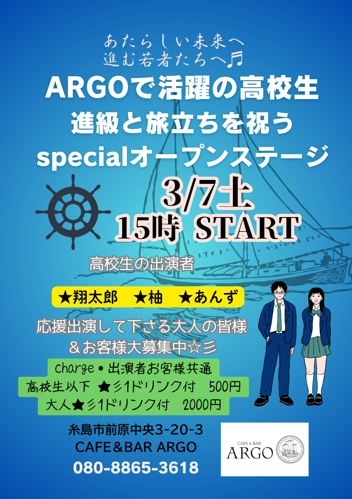 3/7土 高校生アーティスト応援オープンステージ※出演者満枠です