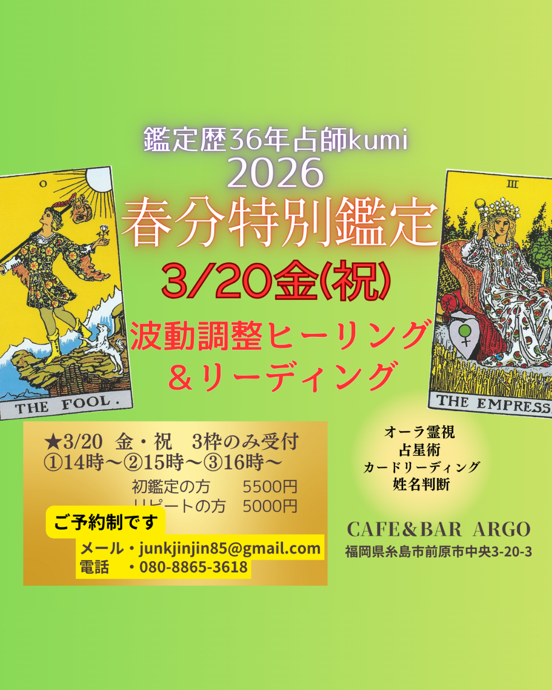 3/20金 春分ヒーリング&特別鑑定day ※ご予約残一枠受付中♬