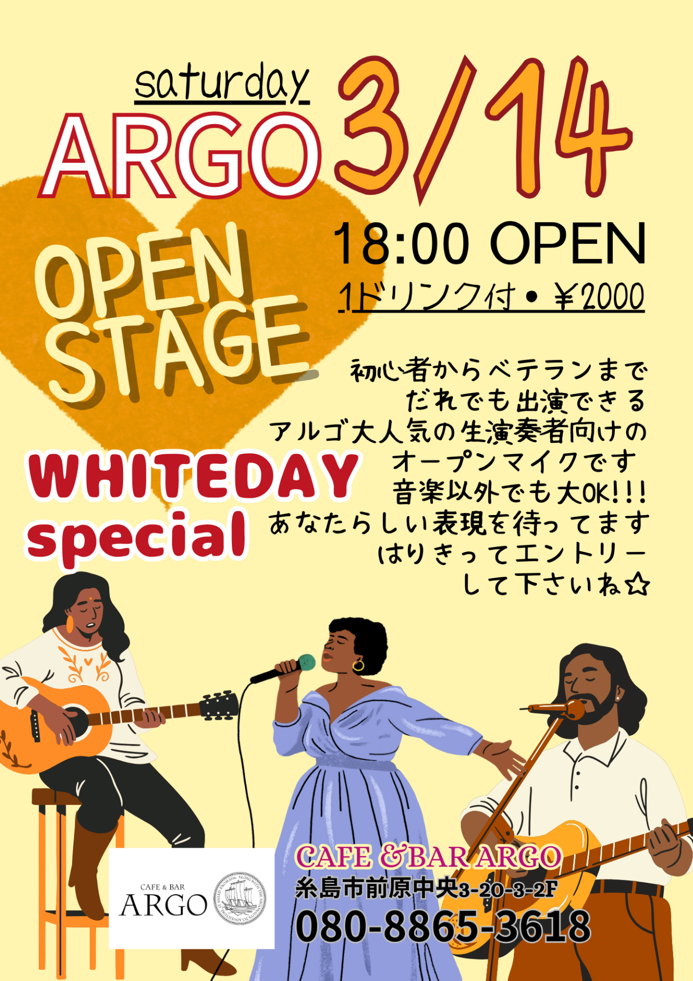 3/14土 ホワイトdayオープンステージ※出演者絶賛受付中♪