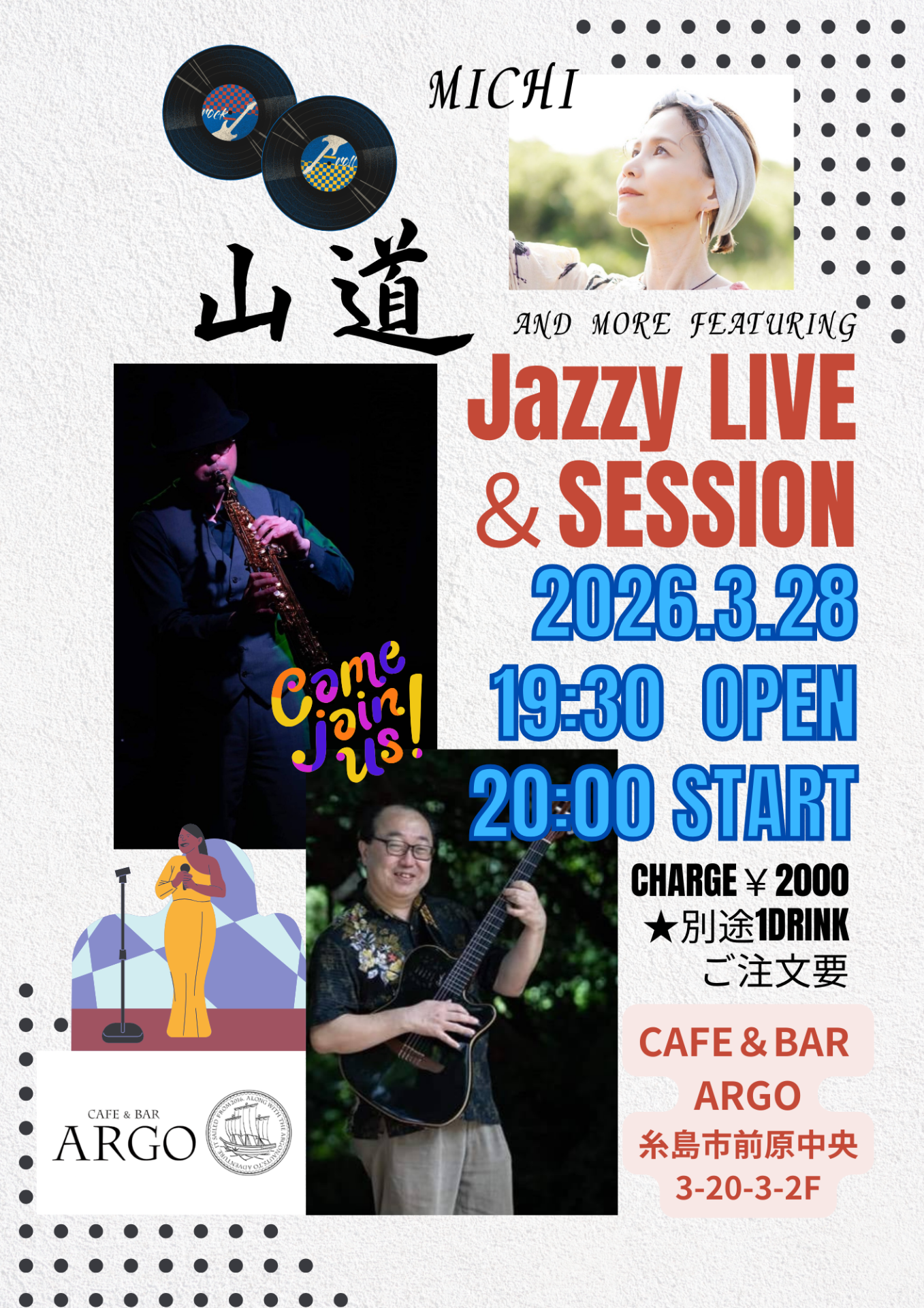 3/28土 山道mith Michi Jazzy LIVE&セッション🎵